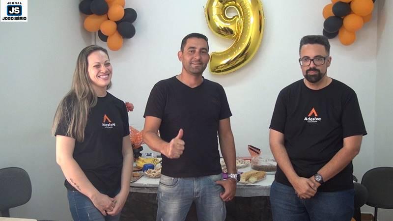 Com uma equipe dinâmica, a Adesive supera as expectativas: “Nove anos de Adesive. Para nós, é muito gratificante chegar neste ponto, considerando-se a situação do País e a dificuldade de gerir e tocar uma empresa. A Adesive nasceu numa sala de 15m², com um espaço de produção pequeno e, no dia-a-dia, fomos lutando e buscando espaço no mercado; a cidade acreditou em nosso trabalho, os clientes pela região e, hoje, é com muito orgulho afirmar que há trabalhos da Adesive em todas as capitais do País e várias cidades”, comentou o gerente administrativo e diretor de artes, Filipe Cassiano Dias.
