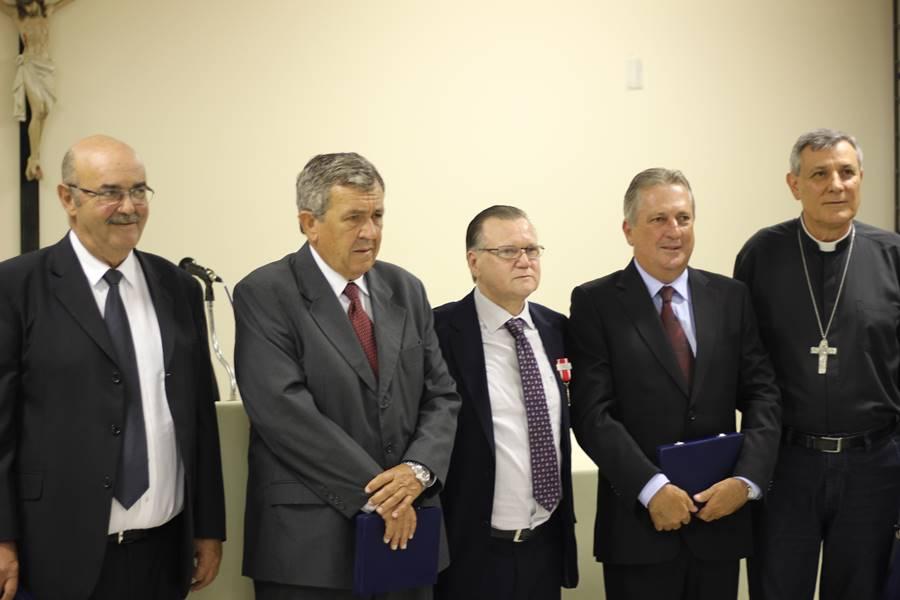 A solenidade, que teve como mestre de cerimônia o escrivão Paulo César Rossi Elias, destacou mesa diretora composta pelo diretor do Fórum, o juiz de Direito João Batista Mendes Filho, o bispo diocesano, Dom José Lanza Neto e o homenageado da noite. Além deles, ocuparam lugares à frente no evento os prefeitos de Guaxupé e São Pedro da União, respectivamente Jarbas Corrêa Filho (Jarbinhas) e Custódio Ribeiro Garcia; os juízes José Eduardo Junqueira Gonçalves e Cristiane Vieira Tavares Zampar; os presidentes da Câmara de Guaxupé, Danilo Martins de Oliveira, da OAB/Guaxupé, Marco Antônio Alves, e da FUNDEG, José Renato de Souza Vianna Almeida; os comandantes da Polícia Militar e do Corpo de Bombeiros, major Afrânio Garcia e tenente Josué Pereira de Oliveira; o defensor público, Felipe Moreira Favila, e o professor universitário e dirigente escolar, dr. César Nunes.