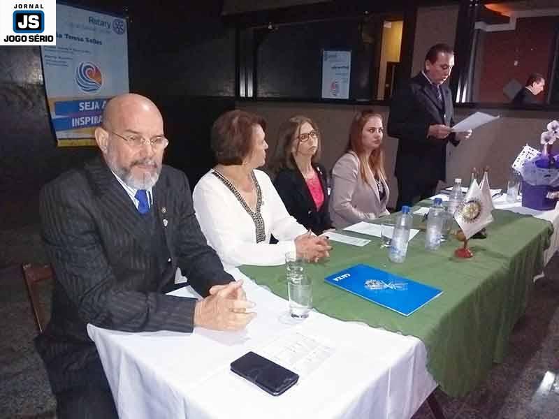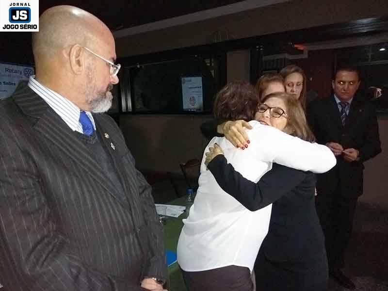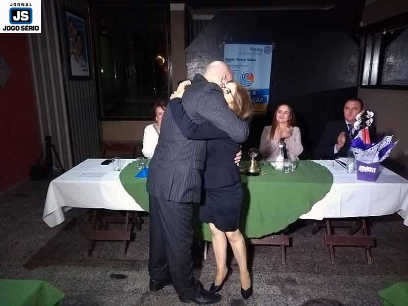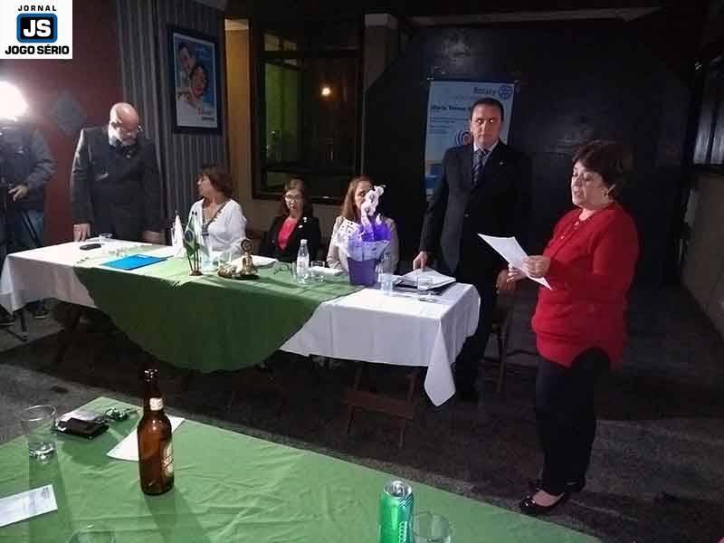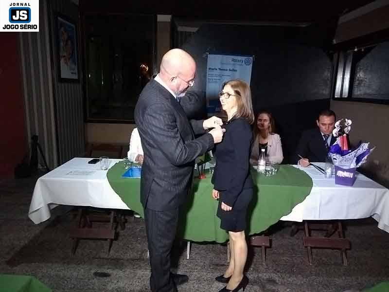 Já a posse de Maria Teresa foi feita por Walmor, o qual enalteceu a dedicação da dirigente, que já vinha ocupando o cargo, em virtude de problemas de saúde de seu antecessor. Em seu discurso, a presidente empossada garantiu empenho ainda maior: “Estou feliz, mas apreensiva, em virtude da grande responsabilidade. Contudo, confio na família rotária e sei que me ajudarão muito”, disse ela, que comentou, sobre suas pretensões: “Vamos continuar com o projeto da venda de pizzas, lutar pela manutenção de nossas causas e criar novos projetos”, complementou Maria Teresa. Após a sessão cívica, os convidados participaram de um jantar especial, onde ocorreu a devida confraternização.