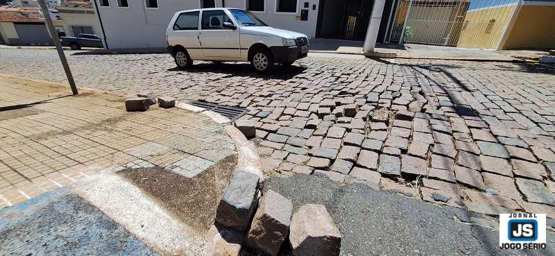 Paralelepípedos soltos oferecem risco à segurança em pontos distintos de Guaxupé