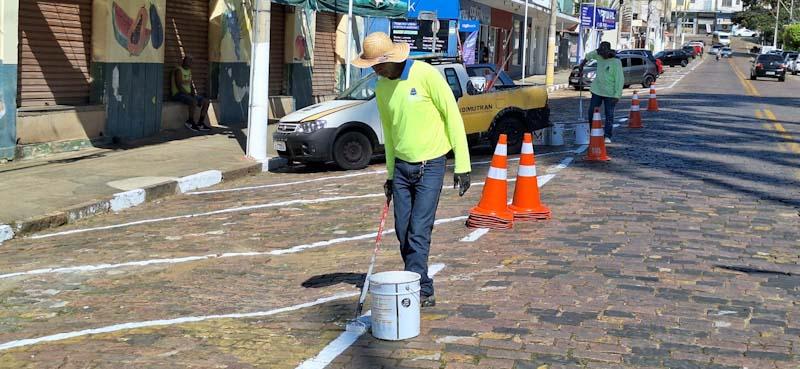 Servidores públicos responsáveis pela pintura viária em Guaxupé iniciam o trabalho às 3h da madrugada