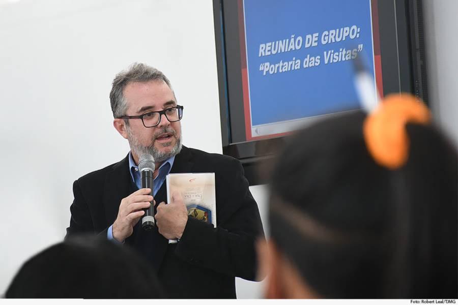 Estiveram presentes o desembargador aposentado Armando dos Anjos, presidente do programa Novos Rumos; o juiz Luiz Carlos Rezende e Santos, coordenador executivo do programa; e o juiz da VEP de Belo Horizonte, Marcelo Augusto Lucas Pereira.