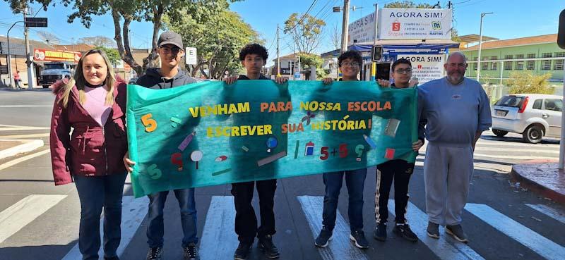 Dirigentes, professores e alunos da Escola Estadual Dona Queridinha Bias Fortes, em Guaxupé, no Sudoeste mineiro, participaram, nesta segunda-feira, 11 de agosto, do “Dia D da Busca Ativa”. Realizado para captar novos estudantes à rede pública de ensino, a iniciativa ocorreu nas duas vias da Avenida Dona Floriana, nos cruzamentos com a Rua Dom Ranulfo e Praça Dom Assis, na área central da cidade. (VEJA A publicidade da Cooxupé e continue a leitura em seguida)