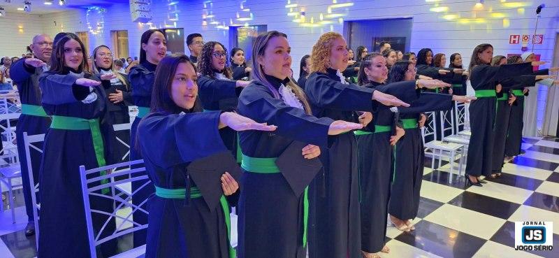 EM MEMÓRIA: Além da entrega de certificados, o clima de emoção foi acentuado por conta das homenagens póstumas às memórias das alunas Ana Elise de Carvalho Gomes e Elaine Pereira da Costa Silva, que pertenciam as duas turmas de Enfermagem concluídas ontem. “Eram alunas brilhantes, que deixaram muitas saudades, mas jamais serão esquecidas”, comentou a professora Dayani, em seu discurso (familiares das duas ex-alunas foram chamados à frente, no evento de ontem, para receberem o carinho dos presentes. - Atento aos principais acontecimentos da cidade e região, o repórter e vereador Carlão, do Jornal JOGO SÉRIO, registrou toda a formatura, sendo que você vê as fotos nesse CLIQUE AQUI. - AJUDE O jornal que lhe informa a todos os momentos: faça um PIX de qualquer valor para 11.086.919/0001-66. - CLIQUE AQUI e receba os conteúdos do JOGO SÉRIO em seu whatsapp. - NESSE LINK, você passa a seguir a nova fanpage/facebook Jornal JOGO SÉRIO. - A QUALQUER instante, acesse www.jornaljogoserio.com.br e fique muito bem informado.