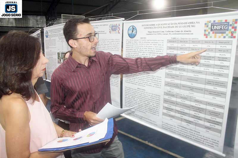 Já nesta noite de terça, professores e universitários participam do “1º Seminário de Pesquisa Científica do Unifeg”. Com apresentações orais e por painéis, de trabalhos distintos, os autores demonstram o conhecimento à área dedicada: “Tivemos a iniciativa a partir do texto ‘s’, de Clarice Lispector, o qual nos foi apresentado pela professora Bete. Depois disto, buscamos, dentro da Publicidade, informações sobre o quanto os idosos são desvalorizados no Brasil”, disse Henrique Leno Agostinho de Lucena, responsável pela pesquisa junto aos colegas Talita Alves Parra, Chrismayra Félix Pereira, Gabriel Lúcio Araújo, Laís Helena Ferreira e Sabrina Luiza Alves Veiga.