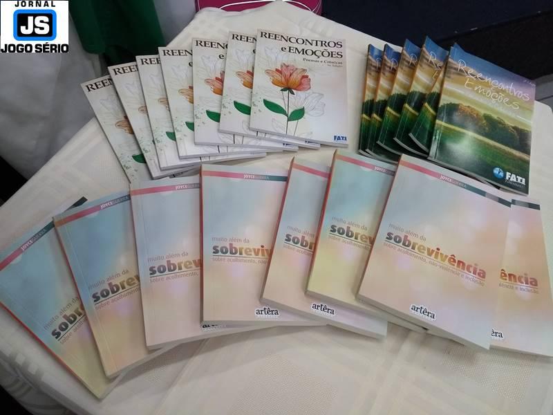 Ao final do evento, alunos da oficina de Livros da FATI/Unifeg divulgaram exemplares da edição deste ano do livro "Reencontros e Emoções", editado anualmente pela Faculdade Aberta. Momento de extrema importância nas vidas dos escritores, o evento literário foi muito aproveitado: "Eu jamais poderia imaginar a riqueza literária disponível nesta instituição, oferecida a cada um de nós, com saber, respeito e amor. Obrigado ao professor Arthus, além de nossas queridas Bete, Adriana e todos que nos proporcionam tudo isto", reconheceu Sebastiana Maria da Silva, diretora do Jornal JOGO SÉRIO e cronista de "Reencontros...". - Acesse o site www.unifeg.edu.br e saiba mais sobre as escolas da FUNDEG.