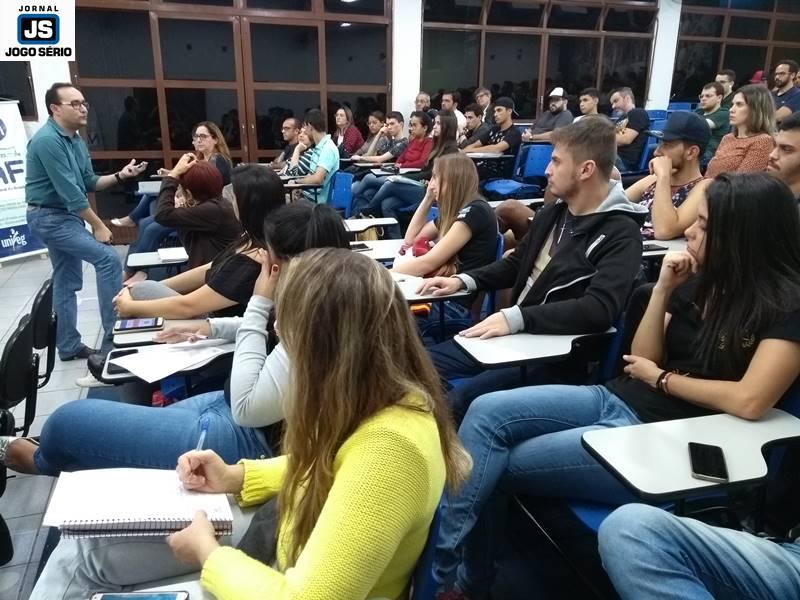Dr. André detalhou as premissas dos direitos autorais, destacou legislações pertinentes, exibiu casos do passado e atuais, a fim de elucidar seu pronunciamento e, acima de tudo, utilizou didática objetiva, com conteúdo enriquecedor, como forma de instruir aos alunos. “O direito autoral é muito importante. Aliás, falar sobre direito hoje é muito pertinente num mundo cada dia mais questionador. Mas, acima disto tudo, é preciso colocar a ética em primeiro lugar”, disse o palestrante, que mencionou itens importantes sobre patentes, marcas, entre outros assuntos relativos àquela atividade.