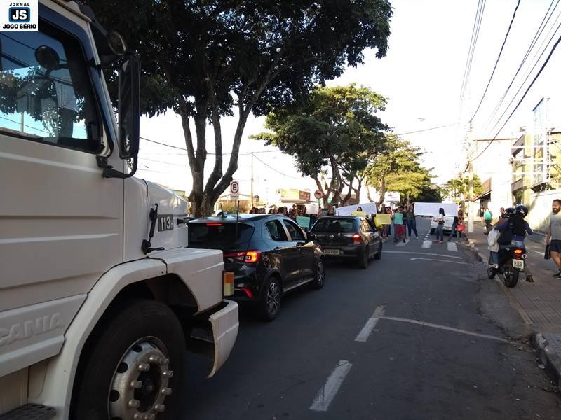Com salários atrasados, professores protestam na área central de Guaxupé