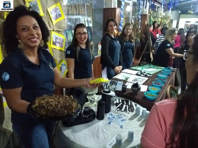 A exibição constou de cinco grupos, à frente de estandes com demonstrações práticas sobre o tema central: “No nosso caso, estamos apresentando curiosidades sobre a Literatura, aliada ao café, suas origens e importância para a cultura, a economia e a região, de modo geral. Sem dúvida, foi muito importante participar, pois além do intuito interdisciplinar, pudemos aprender muito sobre o assunto proposto”, comentou a aluna Brenda Hellen Sipola Pereira, que igualmente às colegas, se dedicou ao trabalho por dois meses até a noite de apresentação.