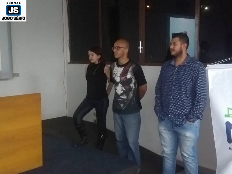 A professora Carol, a presidente Luciana e a gere...