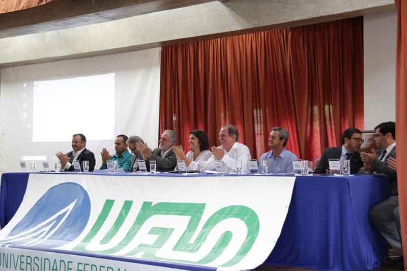“Neste ato de assinatura de contrato estamos dando a ordem de início, o prazo já começa a contar, é inicio imediato”, assegurou o reitor Scolforo, numa concorrida solenidade no Teatro Municipal, com a presença de prefeitos e vereadores de toda a região, lideranças dos setores da educação e cultura, comércio e indústria, entidades de classe, estudantes, além de uma grande comitiva formada por membros dos conselhos superiores e da equipe gestão, com a presença – além do reitor, da vice-reitora, pró-reitores e assessorias.