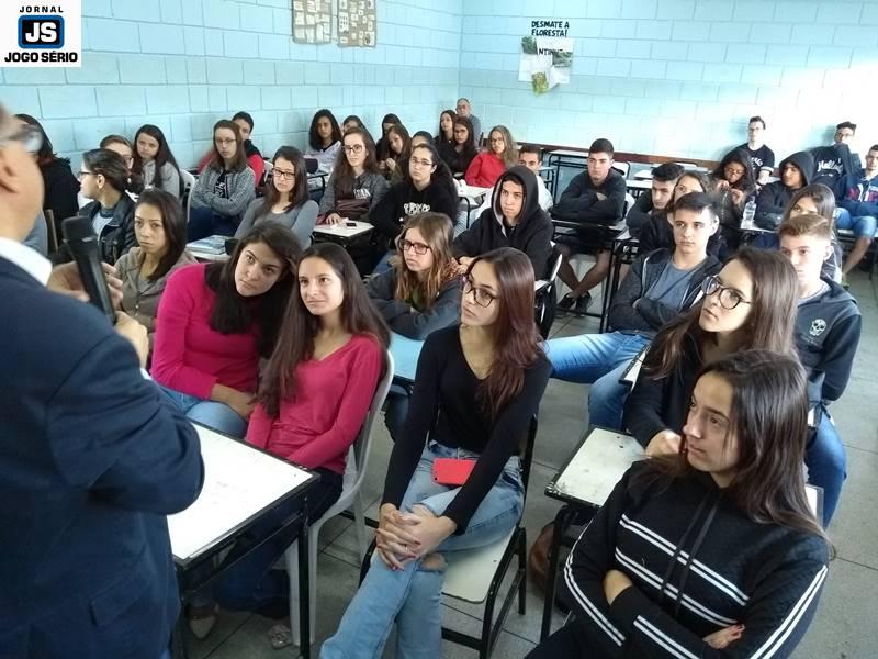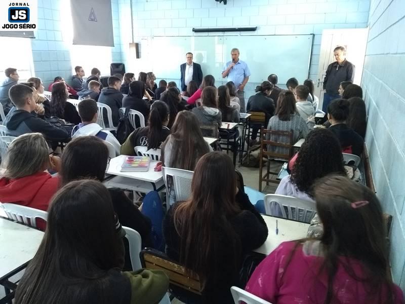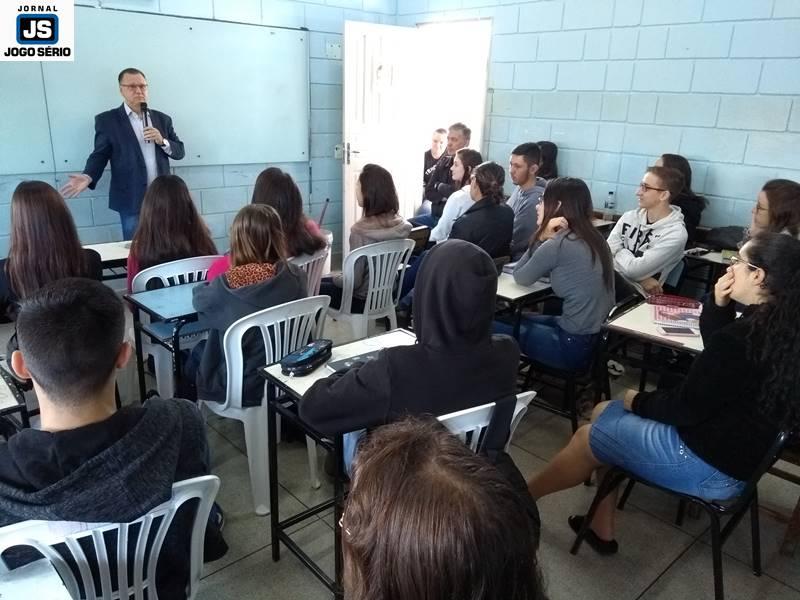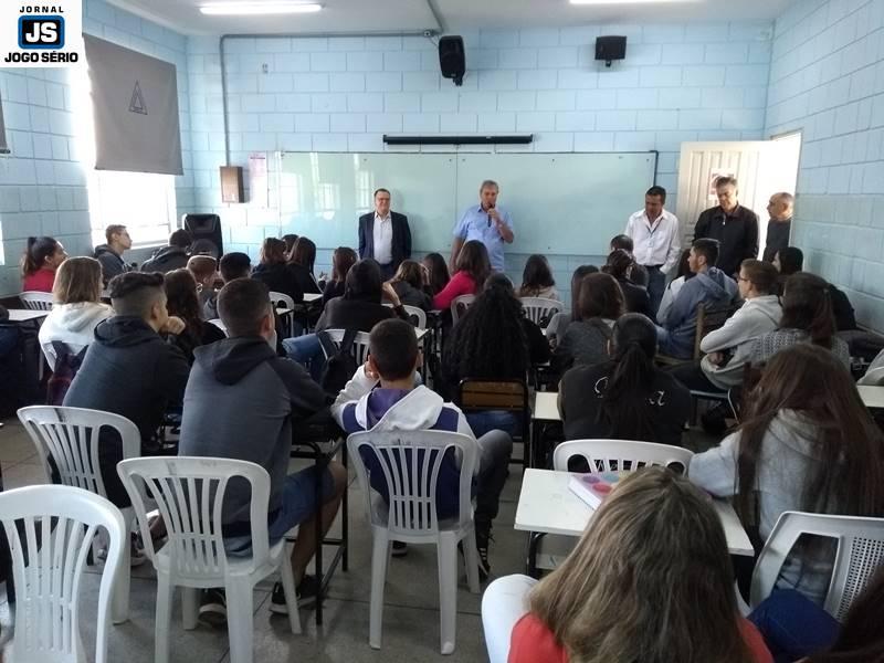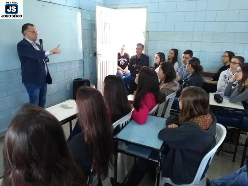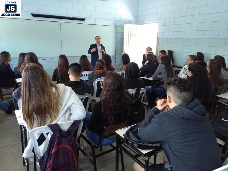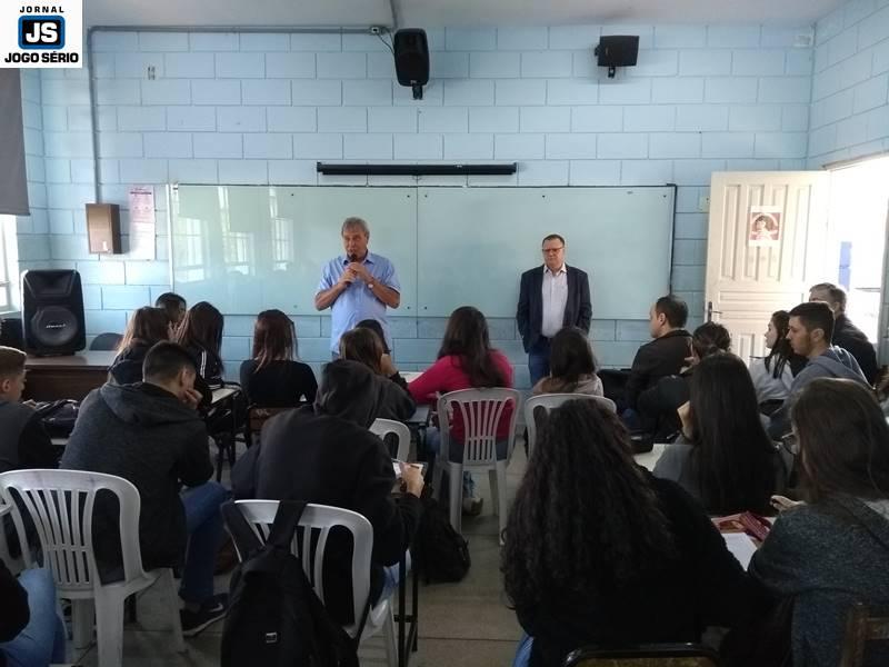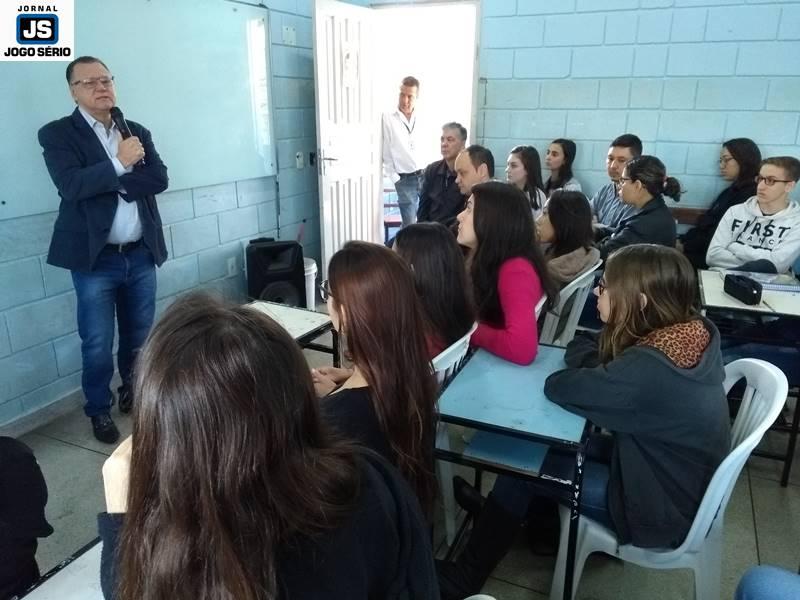 Os educadores José Lázaro de Souza e Reginaldo Arthus, do Centro Universitário da Fundação Educacional Guaxupé, ministraram palestras a alunos da Escola Estadual Eduardo Senedese, em Juruaia, nesta quinta-feira, 30 de maio. Convidados pela direção da entidade, os especialistas conversaram com adolescentes do Ensino Médio, a quem transmitiram conhecimentos não só não área da Educação, mas principalmente mexeram com suas expectativas de vida, nos aspectos social, moral, entre outros.