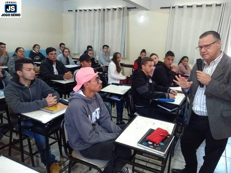 As palestras foram divididas em duas etapas, tendo José Lázaro aberto a conversa com os jovens, sob a ótica de que na vida é preciso esforçar-se desde o início, uma vez que a competitividade está cada vez maior, assim como as dificuldades e o quanto a Educação, por outro lado, liberta as pessoas: “Como exemplo, posso usar nossas próprias histórias, pois nem eu, muito menos o professor Arthus, nascemos em ‘berços de ouro’. Nós tivemos humildade, entendemos que o trabalho digno, seja ele qual for, é sempre o melhor caminho, aliado à Educação, que é essencial para se alcançar um progresso que ninguém jamais poderá tirar daquele que o obtém”, destacou Zé Lázaro.