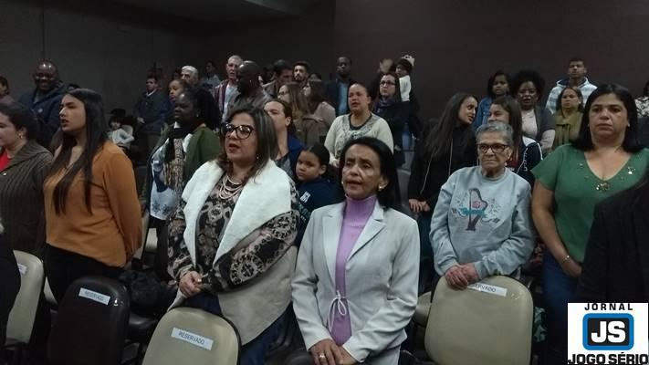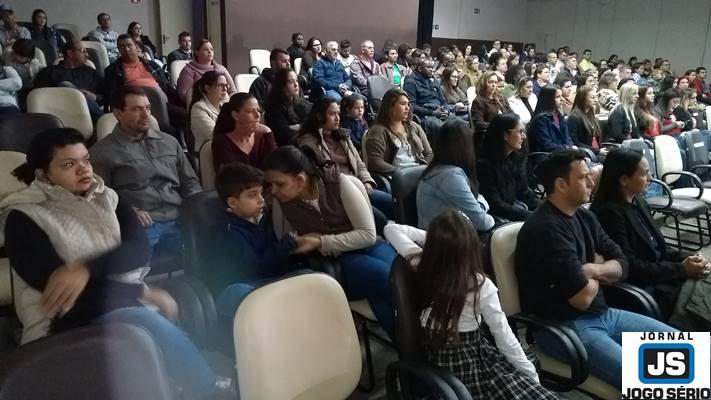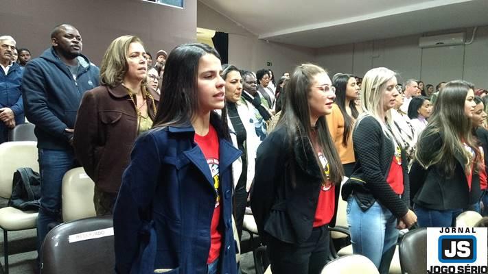 Com o Teatro repleto de pessoas, a cerimônia foi marcada pela emoção de formandos e professores (o curso contou com as parcerias de integrantes da Pedagogia/Unifeg e educadoras da rede municipal de ensino). "Eu jamais me esquecerei deste período, que representou tanto para mim", testemunhou Iandara Martins, aluna da Pedagogia do Unifeg, que foi às lágrimas no palco, ao relatar a importância do aprendizado, enquanto auxiliou na capacitação dos alunos. "Este curso foi especial para mim e não queria que ele tivesse terminado", disse a formanda Nicoli Siqueira, que comoveu aos presentes por conta da emoção espontânea ao fazer leitura oficial, durante o evento.