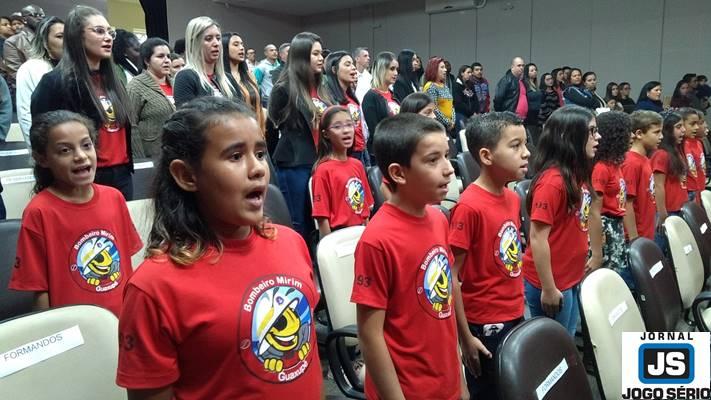 Alunos das escolas municipais Caic e Dr. Carlos de Souza Ribeiro participaram, nesta quarta-feira, 10 de julho, no Teatro Arlete Souza Mendes, da cerimônia de formatura do "Programa de Responsabilidade Social Bombeiro Mirim", promovido pelo 4º Pelotão do Corpo de Bombeiros de Guaxupé. Numa noite em que famílias assistiram de perto o brilhantismo de seus filhos, agora ainda mais capacitados com princípios nobres, o trabalho dos militares mais uma vez foi coroado de sucesso.