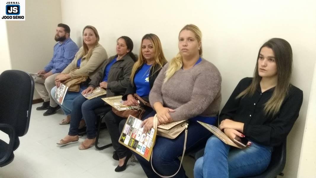 A professora Carol, a presidente Luciana e a gere...