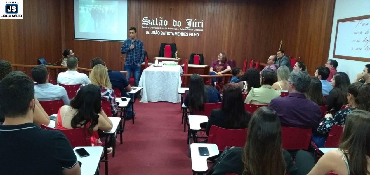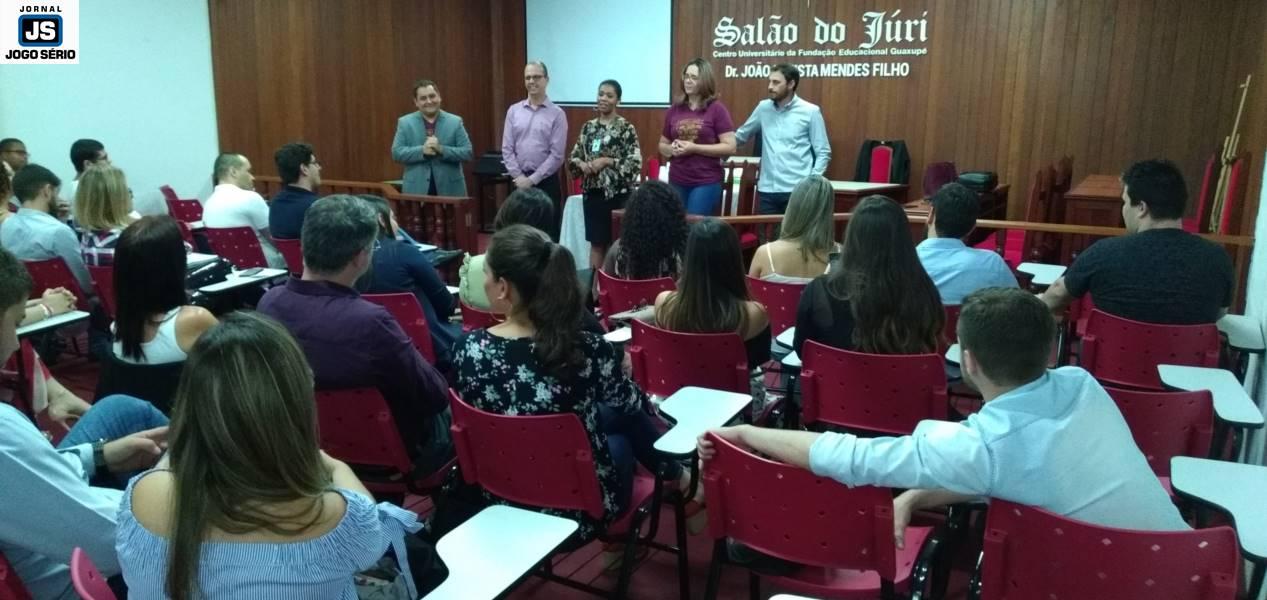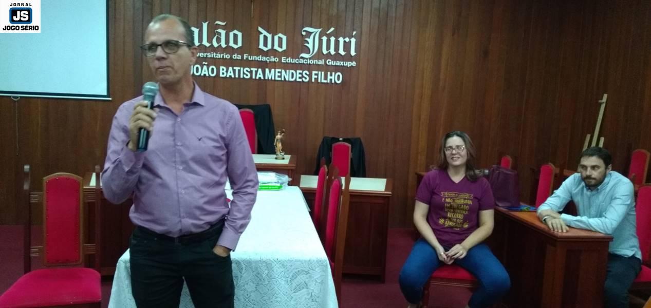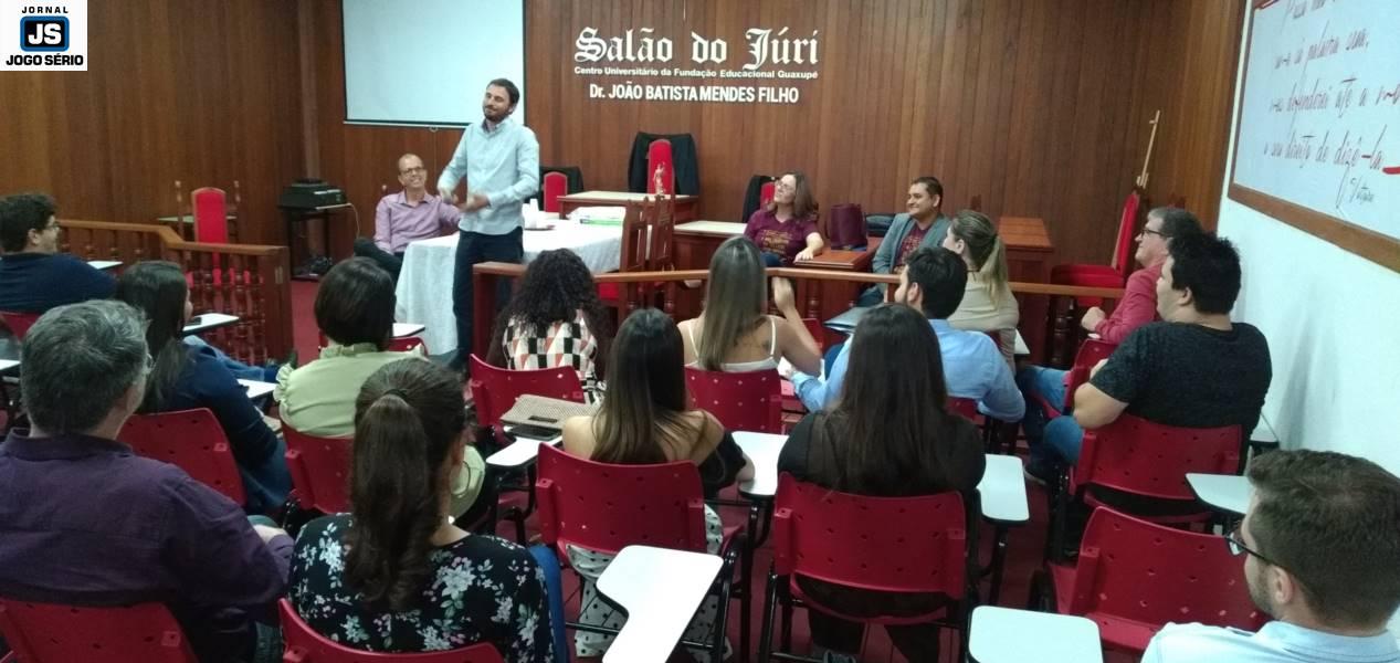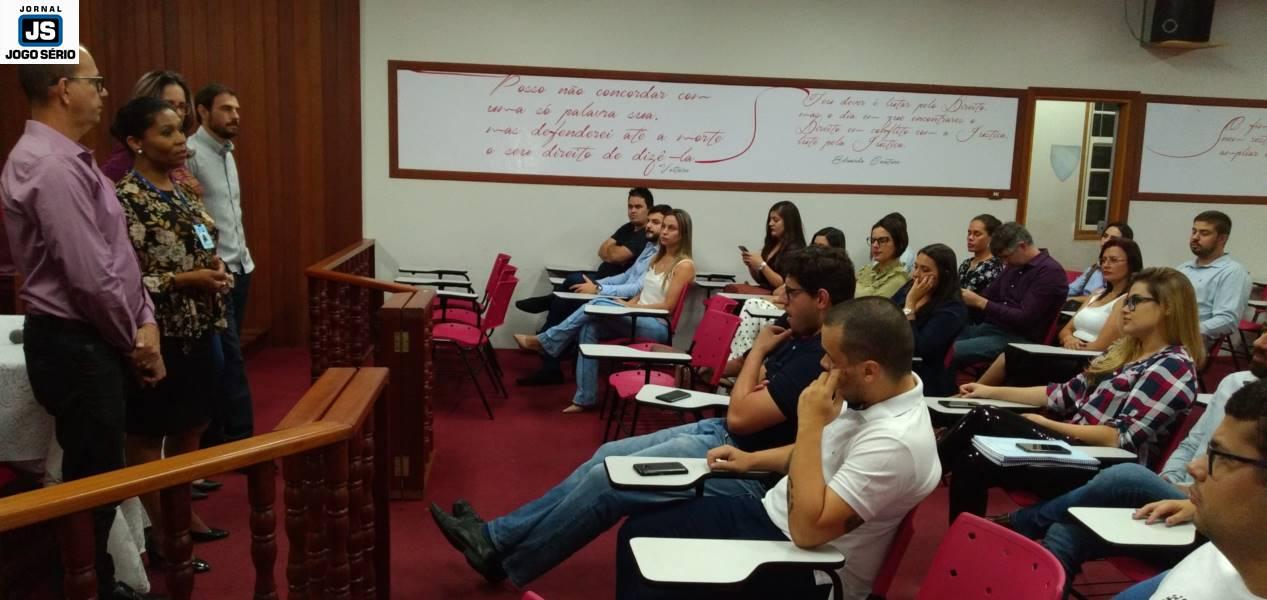 A aula especial aconteceu no Salão do Júri Dr. João Batista Mendes Filho, que fica no campus, e foi conduzida pela professora doutora Ana Cristina de Souza Serrano Mascarenhas (coordenadora do Direito/Unifeg), a qual abriu as explanções e foi sucedida pelos docentes Natal dos Reis Carvalho Júnior, Edélcio Smargiassi, Lisiane Cristina Durante, Maurício Martins, Roberta dos Santos Pereira de Carvalho, Ederson de Souza Félix, Humberto Luís Versola e Marcos Rezende. Marquinhos, diga-de de passagem, ministrou uma palestra a respeito da perseverança, o compromisso social, o discernimento e as atitudes que seus alunos precisarão adotar para desempenharem com êxito a profissão escolhida.
