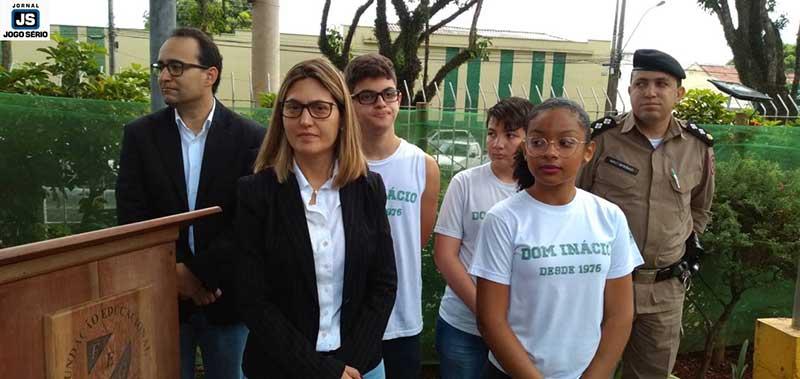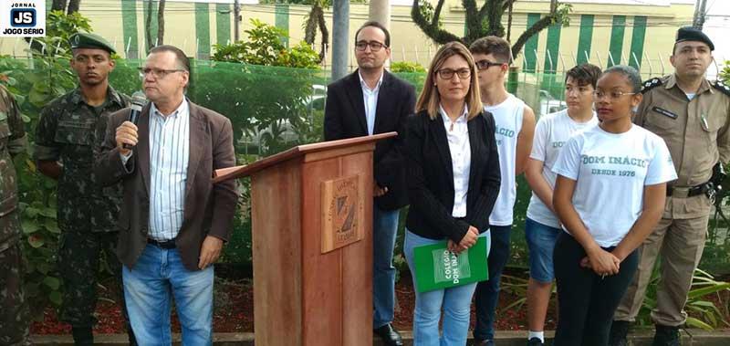 Numa manhã bastante animada, ocorrida no pátio da escola, alunos de diferentes períodos assistiram à cerimônia. "Eu gostei demais, pois nunca tinha visto uma apresentação do Exército assim, de tão perto", comentou a estudante Giovanna Makovics, do 6º ano. "Eu não conhecia o "Hino à Bandeira" e achei muito bonito. Aliás, não sabia que existia este negócio de insinerar a bandeira quando vão trocá-la por outra", completou o aluno Pedro Henrique Alfenas Ribeiro, do 3º ano. "Eles ficaram encantados e nos deixaram felizes com este grande interesse demonstrado", enfatizou o professor Alberto Camillo, da área de Ciências Exatas. "Ir além do ensino, propriamente dito, só enriquece cada vez mais o conhecimento de nossos alunos", comentou a diretora Juliana. "É um dia inédito e inesquecível! A partir de hoje, nossos alunos saberão bem mais o valor do Exército, do civismo, da Pátria", complementou dr. Arthus. "Os alunos se mostraram muito receptivos em aprender sobre o significado da solenidade. O Dom Inácio está de parabéns pela iniciativa. Nós, do Tiro de Guerra, ficamos honrados por realizarmos tão importante solenidade junto àquelas crianças e adolescentes", concluiu o sargento Santoro.