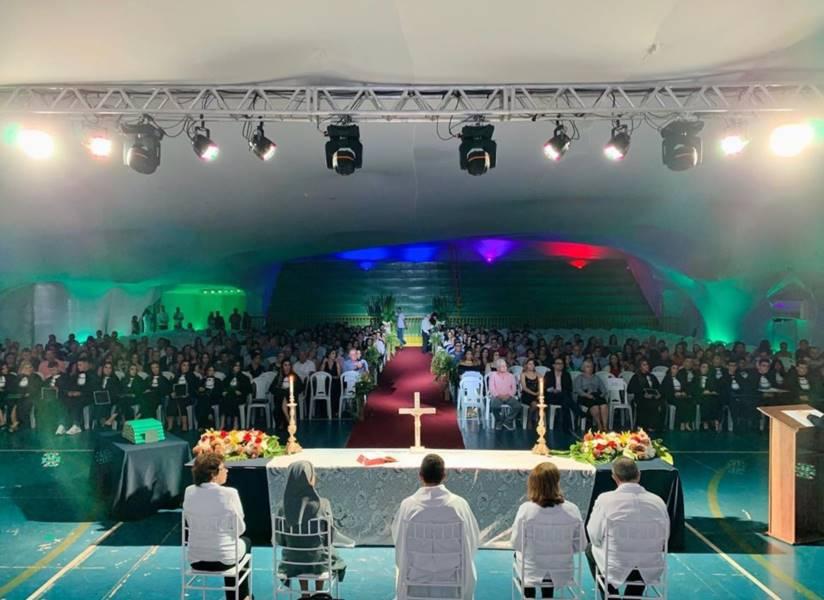 Dirigentes escolares, familiares e alunos concluintes do 3º ano - Ensino Médio - pelo Colégio Dom Inácio de Guaxupé participaram de uma sessão solene de formatura da turma 2019. A cerimônia aconteceu neste sábado, 1º de fevereiro, no Complexo Poliesportivo Dr. Mário Dallora, que fica na sede das escolas da Fundação Educacional Guaxupé. Reconhecida como uma das melhores do Brasil a referida escola destaca-se pela qualidade do ensino oferecido, o qual viabiliza, aos formandos, sucesso nas principais faculdades do País.