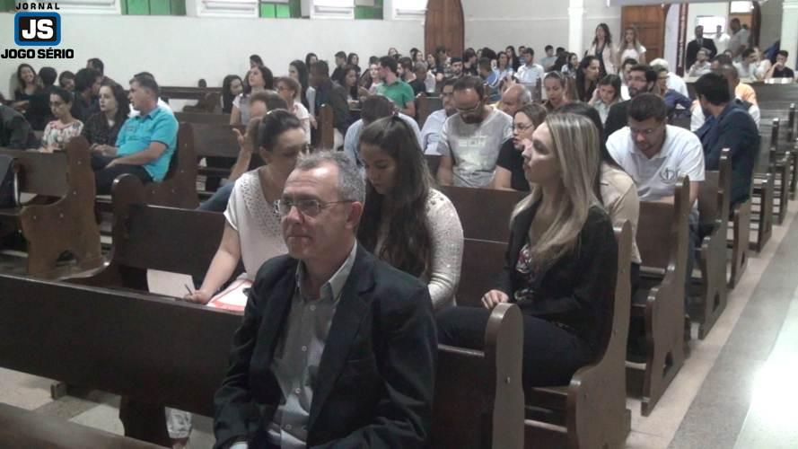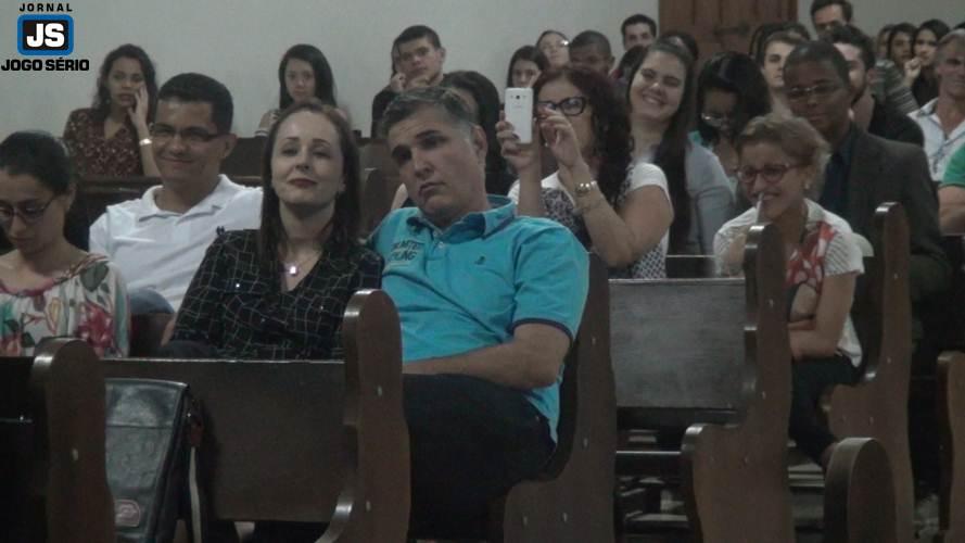 Dr. Thales dividiu Mesa Diretora com os defensores públicos Felipe Moreira Favila e Luiz Roberto Costa Russo, o coordenador do curso de Direito do Unifeg, professor doutor Humberto Luís Versola, o vereador João Fernando de Souza (que ocupa cargo na diretoria da FUNDEG), o professor Osmar Patti Magalhães e a aluna Lorrane Alves Ferreira, representante dos discentes da instituição. Após a sessão cívica, o palestrante iniciou seus trabalhos, tendo falado por cerca de duas horas, na Capela São José, a qual esteve lotada para ouvir ao profissional. Sempre muito conhecedor do Direito, o promotor (que este ano atua na Justiça Eleitoral) transmitiu sua experiência, alertou aos alunos sobre pontos fundamentais da legislação e chamou a atenção, a todo momento, para a aplicabilidade correta das leis.