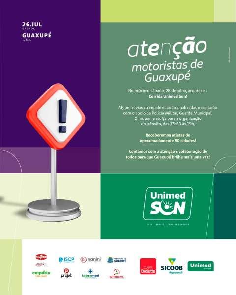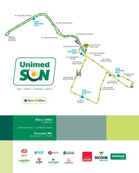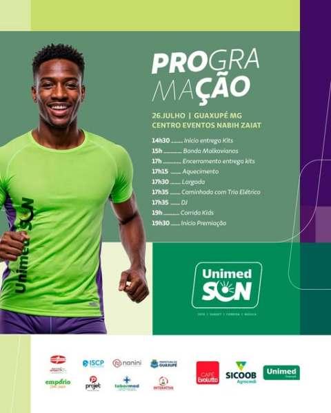 Cerca de seiscentos atletas, de aproximadamente cinquenta municípios, disputarão a edição deste ano da "Corrida Unimed Sun", que será realizada neste sábado, 26 de julho, em Guaxupé, no Sudoeste mineiro. Promovida pela referida cooperativa médica, a competição ocorrerá a partir das 17h30, com muito esporte, música e congraçamento. De acordo com os organizadores, a entrega de kits ocorrerá a partir das 14h30, sendo necessária a doação de dois quilogramas de alimento não perecível no ato da retirada do kit atleta! - SINALIZAÇÃO: Ainda a respeito da corrida, alguns trechos da cidade estarão sinalizados e temporariamente interditados para garantir a segurança dos atletas e da comunidade (das 17h30 às 19 horas). Por isso, programe-se com antecedência e opte por vias alternativas (confira, na parte de fotos dessa matéria, o percurso completo no comunicado oficial). - AJUDE O jornal que lhe informa a todos os momentos: faça um PIX de qualquer valor para 11.086.919/0001-66. - CLIQUE AQUI e receba os conteúdos do JOGO SÉRIO em seu whatsapp. - NESSE LINK, você passa a seguir a nova fanpage/facebook "Carlão, do Jornal JOGO SÉRIO". - A QUALQUER instante, acesse www.jornaljogoserio.com.br e fique muito bem informado.