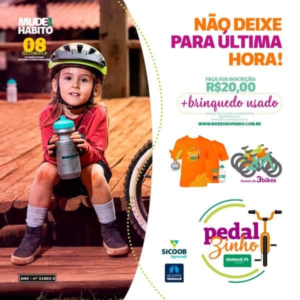 A Unimed Guaxupé realizará, neste dia 8 de dezembro, o seu "1º Pedalzinho", cujo objetivo é incentivar as crianças à prática do ciclismo e da saúde plena. O evento está sendo organizado pelo setor de marketing daquela cooperativa médica, em parceria com o Bikers Rio Pardo, e ocorrerá na Praça do Terminal Rodoviário, com as inscrições já abertas. CLIQUE AQUI e saiba como garantir a participação de seus "ferinhas". Ah! E além de viabilizar esporte às crianças, a Unimed tem também o objetivo de contribuir para com o Natal das crianças carentes, com a arrecadação de brinquedos, que serão ofertados junto às inscrições.