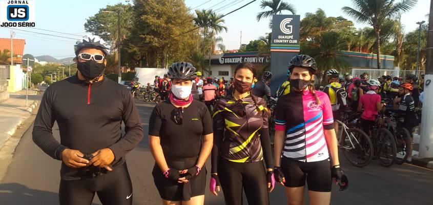 Com um expressivo número de participantes, o "rolê" saiu da sede do Guaxupé Country Club, com destino a estradas rurais do Município. Num clima tranquilo, os participantes comemoram a festa do esporte, ao mesmo tempo em que destacaram o apoio social: "Hoje vamos ajudar ao Luz da Vida com doação de lenços, pois só quem passou por isto na família sabe o quanto essa Associação ajuda as pessoas", enfatizou Mari Silvério. "Durante o ano, fazemos vários pedais solidários. Este, em especial, para dar mais vaidade às mulheres com câncer. Já na Casa da Criança, atendemos quarenta e cinco famílias, além de nossos acolhidos", complementou Camila Barbetta, psicóloga da Casa da Criança e uma das incentivadoras do ciclismo.