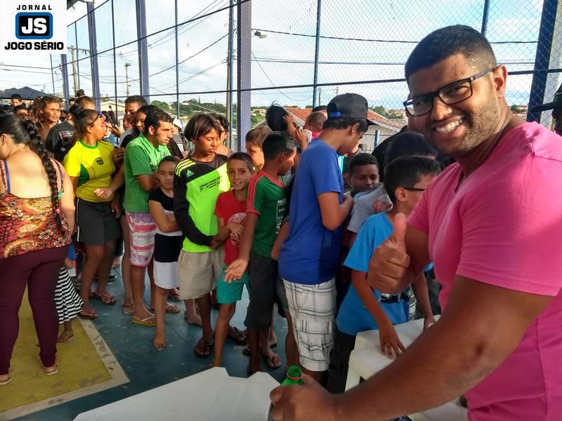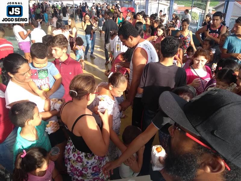 Cerca de quinhentas pessoas participaram, neste sábado, 20 de outubro, da “Festa das Crianças do Exército do Bem 2018”, realizada na quadra comunitária anexa à Escola Dr. Carlos de Souza Ribeiro, entre os bairros Catetos e Jardim Recreio, em Guaxupé. Organizado pelo líder comunitário Marcelo Souza de Andrade, que é popularmente conhecido como “Peixão”, o evento destacou a valorização da ONG em para com as famílias de bairros populares. Neste ano, a festança teve como patrono o vereador Francis Osmar da Silva, o qual foi homenageado pela direção do “Exército...”, em função do apoio dado aos assistidos pela entidade.