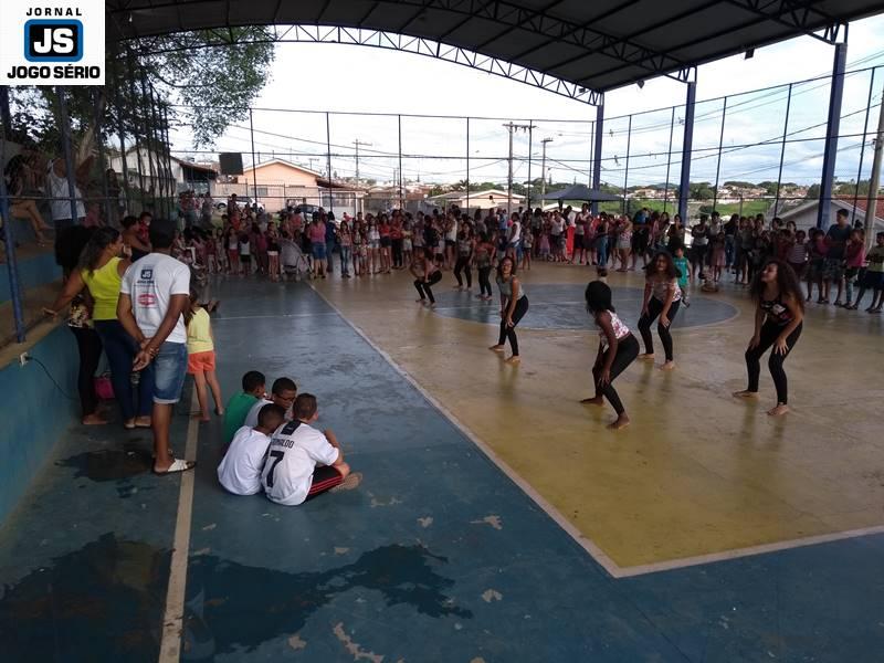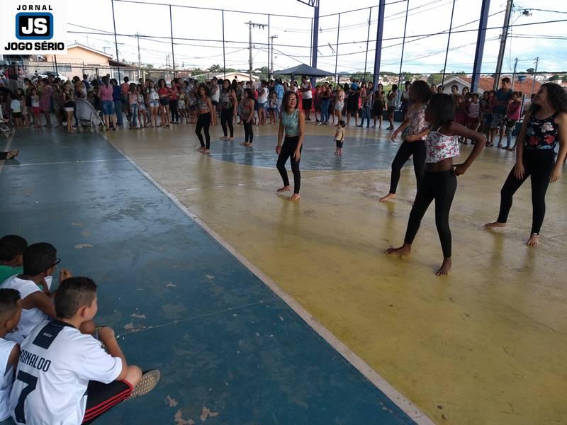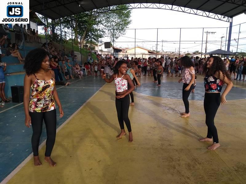 A festa foi abrilhantada por distribuição de guloseimas, além de lanches, refrigerantes, sorvetes, saquinhos-surpresa, pinturas nos rostos e muita diversão. Com integração social e cultura, a promoção contou com apresentação de dança, realizada por parte da oficina de dança do Exército do Bem. “A gente nem tem palavras para explicar o que significa nos apresentarmos para os pais das alunas, seus amigos e as famílias, em geral. Só Deus para traduzi nosso sentimento, já que as meninas ensaiam com afinco, se produzem ao extremo e, com seus sorrisos nos rostos, vão para a quadra mostrar um pouquinho do que aprendem o ano todo conosco”, disse a instrutora da dança do “Exército”, Tamires Martins.