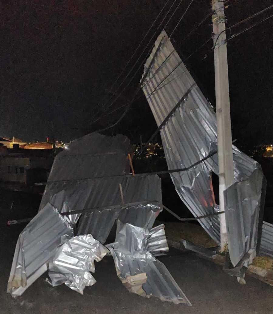O vento forte começou por volta das 19h, quando uma nuvem escura de poeira tomou conta da cidade. Em alguns pontos, inclusive, o fato provocou destelhamentos, como no Parque dos Municípios, onde uma estrutura metálica literalmente voou pelo bairro após soltar-se de imóvel. O material atingiu uma fiação elétrica da Rua Formiga, onde moradores alegam estar sem luz até a manhã deste domingo.
