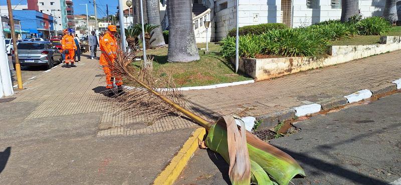 Folhas das palmeiras imperiais colocam em risco a segurança de cidadãos na cidade de Guaxupé