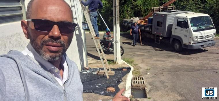 O vereador e repórter Carlão, do Jornal JOGO SÉRIO, de Guaxupé, no Sudoeste mineiro, servidores da Secretaria Municipal de Obras e trabalhadores da Copasa atenderam, nesta tarde de quarta-feira, 22 de outubro, reivindicações de moradores do Jardim Bela Vista. Incomodados com o entupimento de redes pluviais e de esgoto, os reclamantes pedem as providências, tendo as partes acima citadas comparecido ao local para analisar a melhor forma de sanar os problemas.