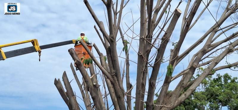 Encontra-se em pleno andamento, nesta manhã de segunda-feira, 27 de outubro, a poda de uma gigantesca seringueira da Avenida Dona Mariana, na área central de Guaxupé, que fica na região Sudoeste mineira. A árvore, plantada há décadas no local, estava condenada fazia meses, desde quando suas folhas caíram e ficaram apenas os galhos. Muito grande, a referida flora oferecia risco à segurança não só de moradores daquelas imediações, mas a transeuntes e condutores de veículos, em geral. Solicitado há algum tempo pelo repórter e vereador Carlão, do Jornal JOGO SÉRIO, o serviço já constava no cronograma de trabalho do governo municipal. “Agradeço ao prefeito Jarbinhas por atender não só ao vereador Carlão, mas principalmente os moradores da Avenida Dona Mariana, onde há outras árvores para serem retiradas e, assim, evitarmos acidentes e transtornos. Há alguns meses, também naquela rua, foi retirada uma árvore nas mesmas condições dessa seringueira, o que gerava muito medo a moradores. Aliás, há cerca de quinze dias a cidade toda praticamente tem recebido esse tipo de manutenção e estamos acompanhando, a fim de ajudarmos na identificação de locais onde esse serviço também precise ocorrer”, disse o vereador Carlão. AJUDE O jornal que lhe informa a todos os momentos: faça um PIX de qualquer valor para 11.086.919/0001-66. - CLIQUE AQUI e receba os conteúdos do JOGO SÉRIO em seu whatsapp. - NESSE LINK, você passa a seguir a nova fanpage/facebook Jornal JOGO SÉRIO. - A QUALQUER instante, acesse www.jornaljogoserio.com.br e fique muito bem informado.