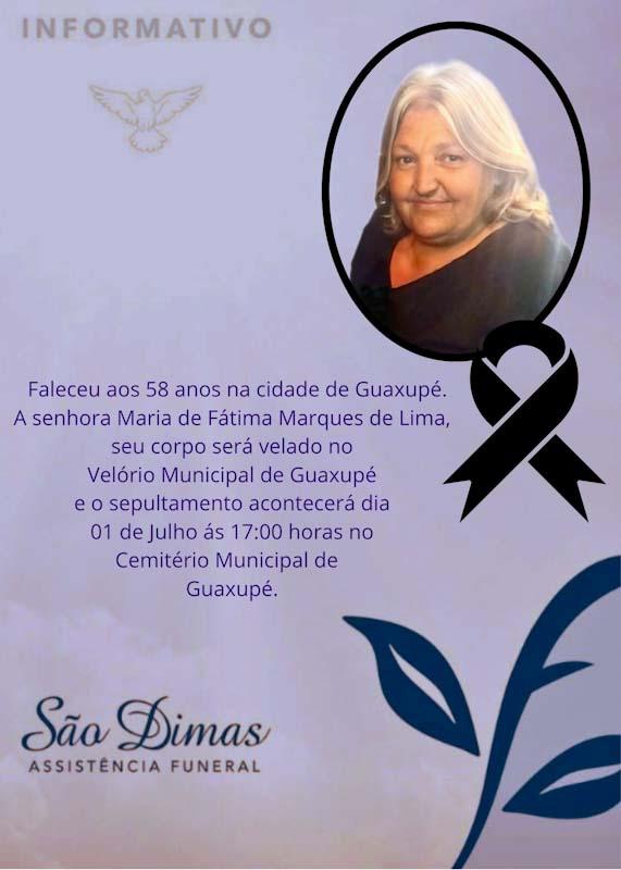 Funerária São Dimas noticia o falecimento de Maria de Fátima Marques Lima