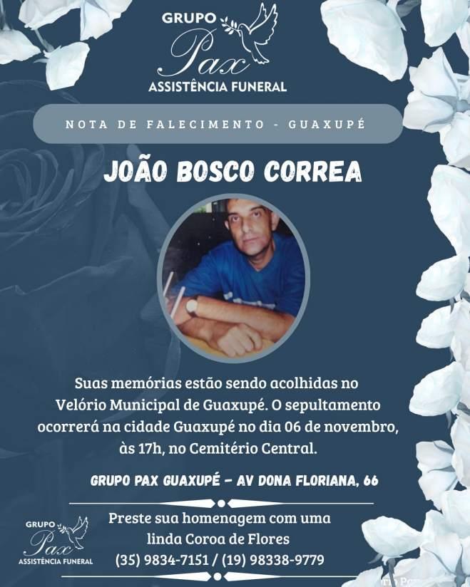 Grupo PAX Guaxupé informa o falecimento do guaxupeano João Bosco Corr...