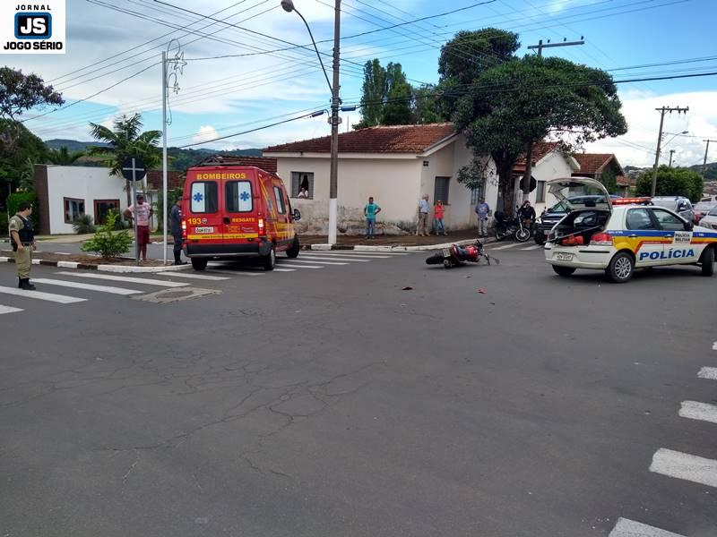 O acidente aconteceu no final da tarde, tendo a motorista do Gol, que trafegava pela “Alvarenga Peixoto”, invadido a preferencial do motociclista, o qual circulava pela “Inconfidentes”, sentido Avenida Conde Ribeiro do Valle. Conforme testemunhas, o rapaz bateu violentamente com sua moto na lateral esquerda do carro, tendo ele sido saltado por cima do veículo. Após o abalroamento, o cidadão ficou no solo, com fratura no braço direito, enquanto a dona do carro permaneceu no volante, em estado de choque e com dores generalizadas pelo corpo.