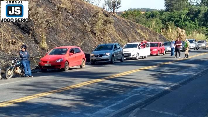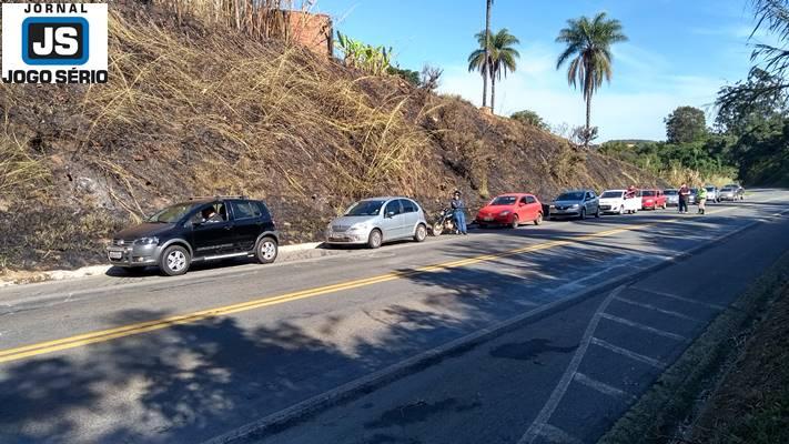 Durante o trabalho, a PM manteve as duas faixas da rodovia interditadas, o que resultou numa fila de veículos. "Eu acho o cúmulo do absurdo estas queimadas! Olha só a série de prejuízos para todos: meio ambiente, animais e os próprios seres humanos", disse o motorista Antônio Paulo, que conduzia a mãe, de idade avançada, e precisou interromper a viagem por cerca de trinta minutos.