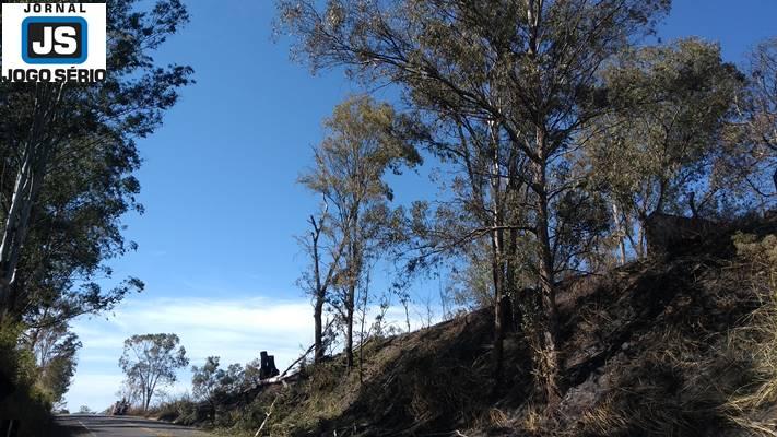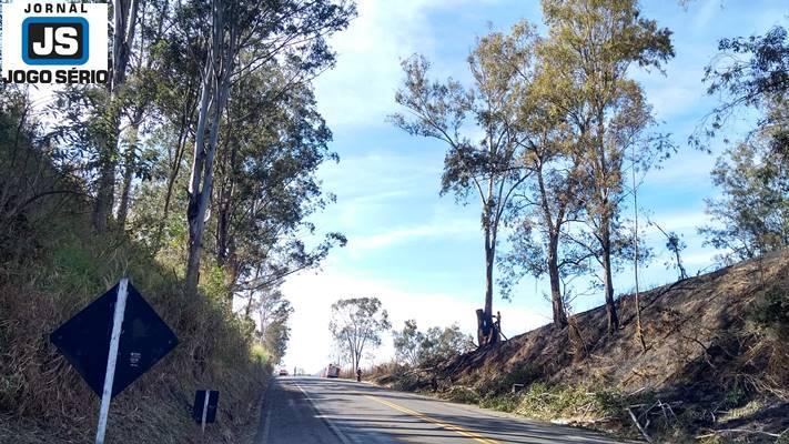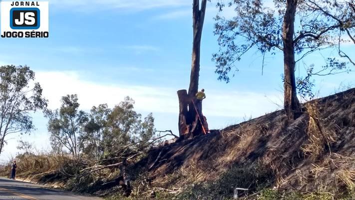 O corte começou ainda de madrugada, quando uma das árvores caiu sobre a rodovia e impediu a passagem de veículos. Acionados, os bombeiros e policiais militares trabalharam pela retirada dos troncos. Porém, na manhã de hoje retornaram ao local e constataram que mais um eucalipto estava condenado. "Ele teve o "pé" queimado e poderia cair sobre a rodovia. Por isto, lamentavelmente foi preciso derrubá-lo", informou o cabo Alexandre Ribeiro, responsável pela poda geral, junto à equipe de serviço.