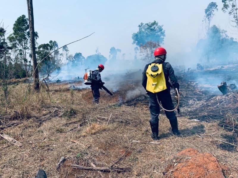 O fogo, ateado nas proximidades do quilômetro 78, ainda não se sabe por quem, já destruiu boa parte do matagal, composto também por árvores nativas e frutíferas. Acionados, os especialistas trabalham em seis pessoas e duas viaturas: "O incêndio já está, de certa forma, controlado, mas poderia sim ter atingido ao Motel Panorama", comentou o cabo Alexandre Ribeiro.