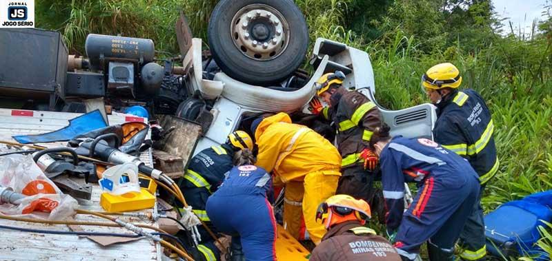 Homem é resgatado após violento acidente com caminhão em Guaxupé