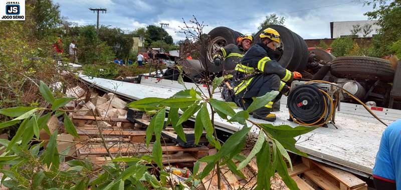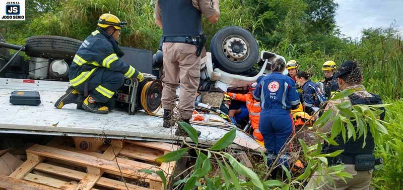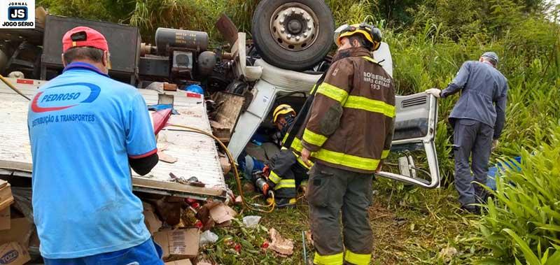 No local, integrantes do 4º Pelotão do Corpo de Bombeiros trabalharam intensamente para retirar o motorista do caminhão: "Depois de muito trabalho intenso, onde precisamos usar todas as ferramentas e aparatos, aparentemente, a vítima não teve ferimentos graves, estava consciente, mas com muita dor. Foi necessário cortar a barra de direção, volante e as bases do banco para liberá-lo da melhor forma e o SAMU conduzi-lo à Santa Casa", informou o sargento Paulo, que liderou a operação.