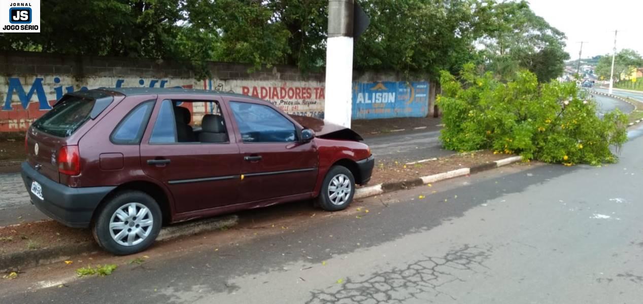 Condutor arranca árvore e bate veículo contra poste