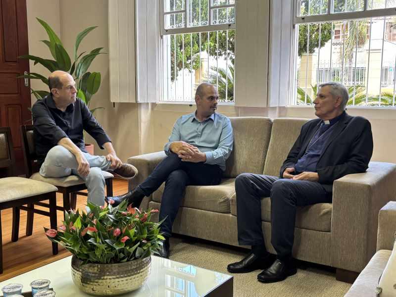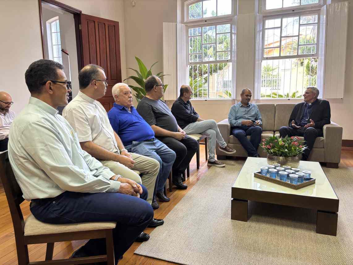 Lideranças receberam, nesta quinta-feira, 9 de abril, ao governador de Minas Gerais, Mateus Simões, na sede da Diocese de Guaxupé, que fica na região Sudoeste do Estado. À frente do Clero regional, o bispo Dom José Lanza Neto e outras autoridades da Igreja recepcionaram o visitante, que foi saudado também pelo prefeito local, Jarbas Corrêa Filho (Jarbinhas). Conforme apurado pelo repórter e vereador Carlão, do Jornal JOGO SÉRIO, a agenda foi restrita e visou o fortalecimento do diálogo institucional com vista à discussão de pautas pertinentes ao Sul de Minas Gerais. Empossado há pouco após a saída de Romeu Zema, que disputará a presidência da República em outubro próximo, Matheus Simões é pré-candidato ao Governo do Estado e tem intensificado visitações em diferentes regiões de Minas Gerais. - CLIQUE AQUI e receba os conteúdos do JOGO SÉRIO em seu whatsapp. - NESSE LINK, você passa a seguir a nova fanpage/facebook Jornal JOGO SÉRIO. - A QUALQUER instante, acesse www.jornaljogoserio.com.br e fique muito bem informado.