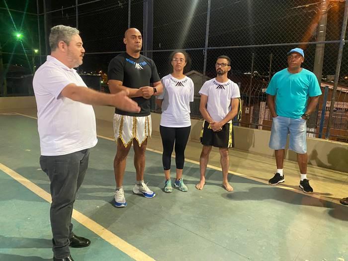 Presente à ocasião, o repórter Carlão, do Jornal JOGO SÉRIO, registrou ao vivo a oferta à entidade do líder comunitário Marcelo Souza de Andrade (Peixão). CLIQUE AQUI e confira! Gratuitas e realizadas em ambiente salutar, as aulas de muay thai ocorrem às segundas e quartas-feiras, a partir das 19h30, na quadra da Escola Dr. Carlos, dirigida pela professora Aline Monteiro Melo Ribeiro. - NESSE LINK, o público recebe os conteúdos do JOGO SÉRIO em seu whatsapp.