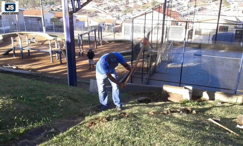 Foram iniciadas nesta manhã de segunda-feira, 25 de julho, as obras de melhorias na quadra poliesportiva anexa à Escola Municipal Dr. Carlos de Souza Ribeiro, em Guaxupé, onde funcionam as atividades do Exército do Bem. Solicitadas pelo líder comunitário Marcelo de Souza Andrade (Peixão, idealizador da ONG, numa parceria com o Jornal JOGO SÉRIO, firmada há pouco mais de três anos). Utilizado no período noturno, de segunda à sexta e o dia todo aos fins de semana, o referido espaço público sedia oficinas esportivas, culturais e manifestações religiosas, tendo moradores de bairros próximos como público-alvo.