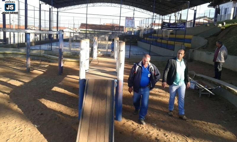 Os serviços de melhorias estão sendo executados pela Secretaria de Obras da Prefeitura, tendo o próprio responsável pela pasta, Eliton Israel Pereira, visitado o local nesta manhã, junto ao secretário municipal de governo e planejamento, Artur Fernandes Gonçalves Filho (Arturzinho), além de encarregados e servidores públicos. “As benfeitorias começam hoje e no mais breve possível a criançada terá de novo o local para praticar suas atividades”, garantiu Eliton, cuja presença foi comemorada pelo homem forte do “Exército...”: “Agradecemos ao empenho, pois as obras vão ao encontro de nosso trabalho, que visa manter principalmente as crianças longe da vulnerabilidade social”, disse Peixão.