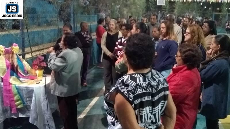 O evento foi aberto com a reza de um terço especial, em louvor a São Pedro e Nossa Senhora Aparecida. O instante, que foi conduzido por integrantes de grupos de oração dos bairros Colmeia I e II, atraiu famílias inteiras para perto das imagens das divindades. Depois, alunas da oficina de dança, das professoras Natália Rodrigues e Tamires Martins, exibiram-se em quadra, sob os aplausos dos presentes. “Pra gente, isto é muito importante, pois sem união não se faz nada. E, por isto, precisamos desta força da comunidade, com cada um ajudando um pouco, para que tanto as festas, quanto os projetos que temos no dia-a-dia, se desenvolvam”, comentou Tamires.