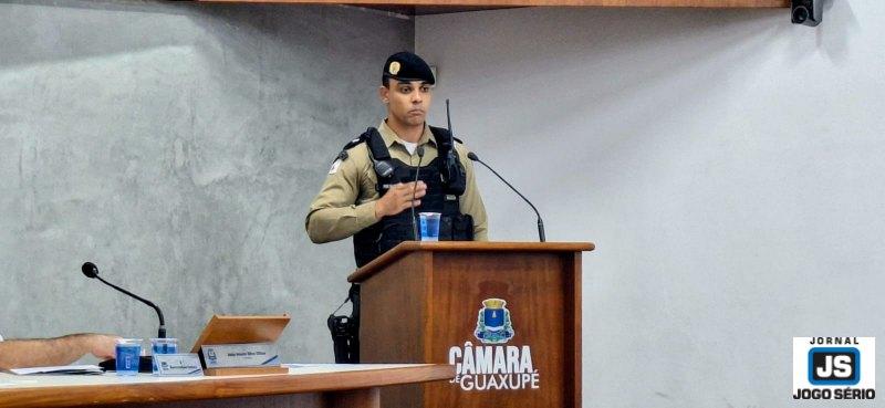 O subcomandante da 79ª Cia. PMMG, tenente Douglas Batista de Souza, usou a Tribuna da Câmara Municipal de Guaxupé, no Sudoeste mineiro, nesta noite de segunda-feira, 3 de novembro, durante a 37ª Sessão Ordinária. Convidado pelo vereador Carlão, do Jornal JOGO SÉRIO, que preside a Comissão dos Direitos Humanos e de Segurança Pública no Legislativo local, o militar transmitiu dados estatísticos sobre o trabalho da instituição. Mais do que isso, ele destacou a importância de programas em parceria com a comunidade, com vistas ao combate à criminalidade.
