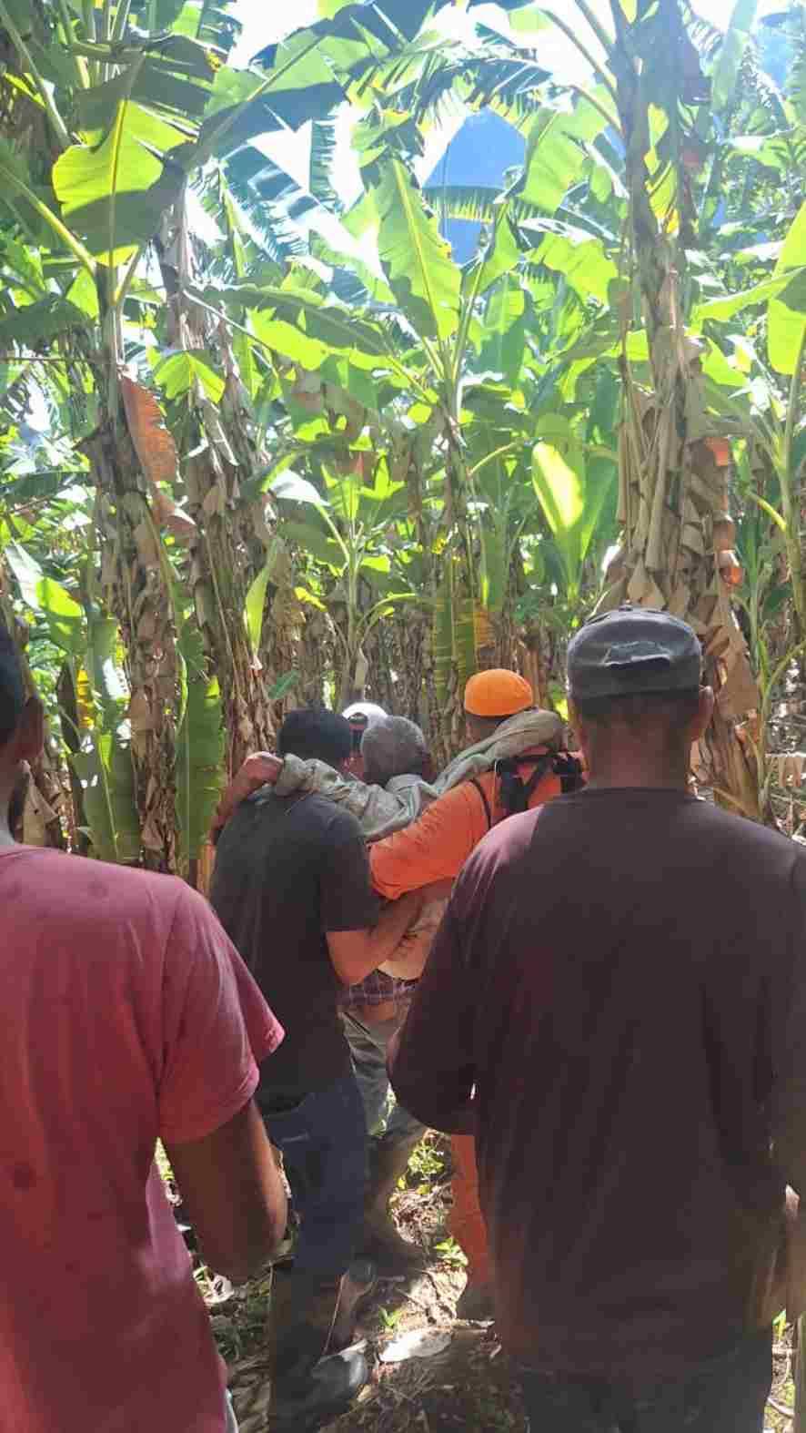Localização e Socorro Para vencer a vegetação fechada, os bombeiros e familiares formaram um "cordão de busca em linha". Durante a progressão no terreno, a vítima foi localizada. O idoso estava consciente, mas apresentava desorientação e sinais severos de desidratação e fadiga.
