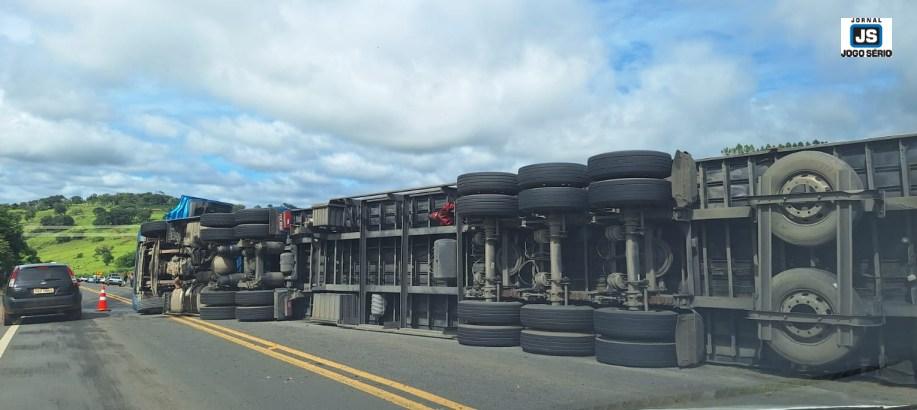 Mais um caminhão capota na rodovia de Guaxupé e São Pedro da União